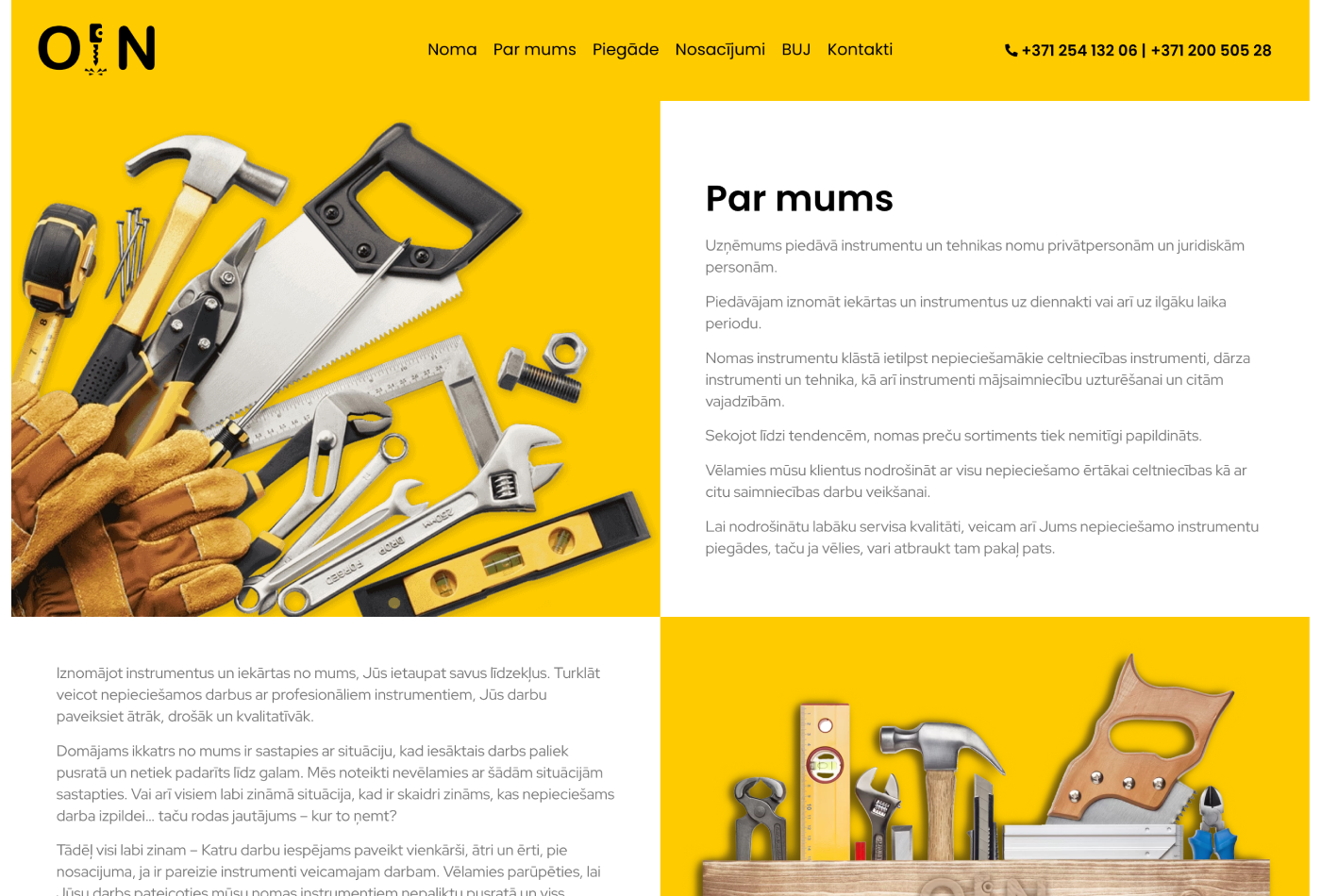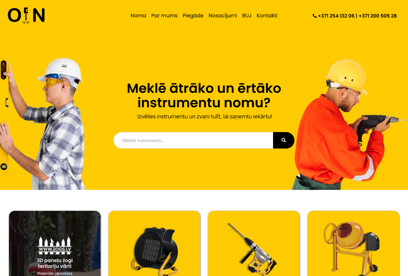 Projekts Oin.lv tika izstrādāts kā ērta un funkcionāla tiešsaistes platforma uzņēmumam “Olaines instrumentu noma”, kas piedāvā plašu instrumentu un tehnikas klāstu gan privātpersonām, gan juridiskām personām. Mūsu mērķis bija radīt digitālu katalogu, kas maksimāli atvieglo piemērotākā instrumenta atrašanu un pieteikšanu nomai.