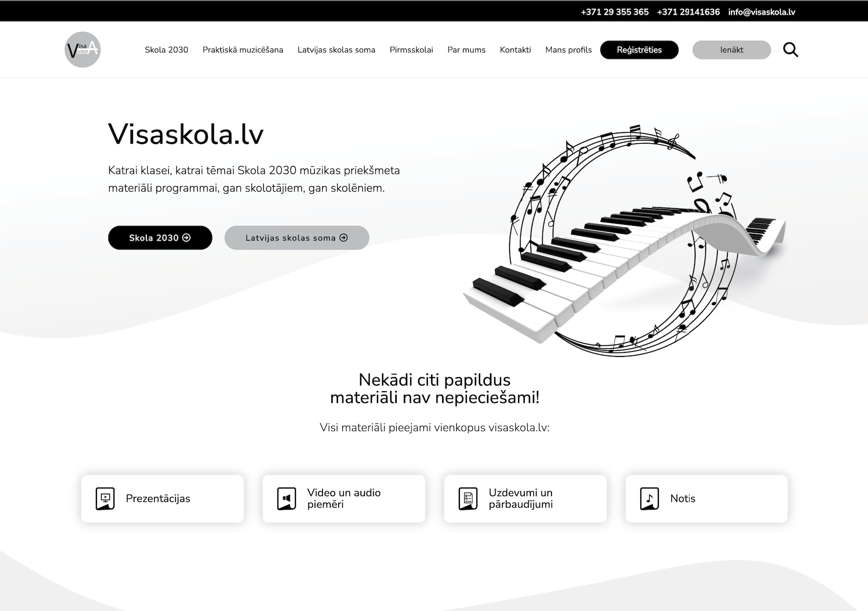Portāls tika veidots mūzikas izglītības materiālu pārdošanai projekta “Skola2030” ietvaros.